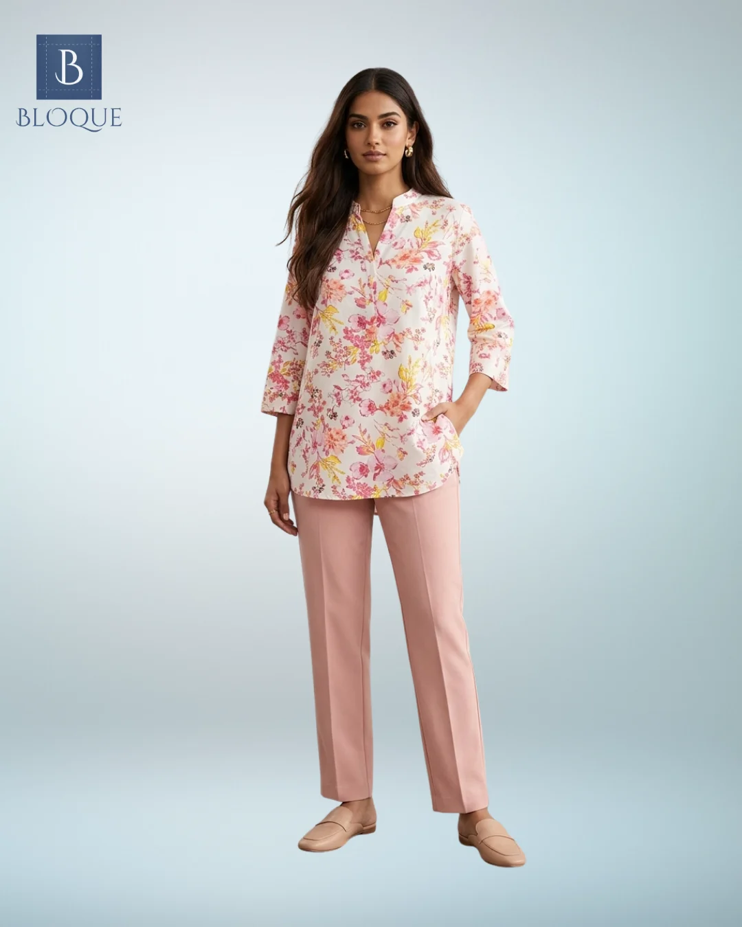NECK EMBROIDERED BLOUSE - PINK